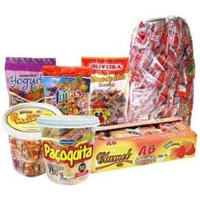 Contendo: 2 sacos de pipoca doce contendo 50 unidades cada 2 sacos de geladinho contendo 50 unidades cada 2 pacotes de maria mole contendo 50 unidades cada 2 pacotes de chup chup doce de leite contendo 50 unidades cada 2 pacotes de paçoca contendo 50 unidades cada 2 pacotes de chiclete ou bala contendo 100 unidades cada 2 pacotes de quebra queixo contendo 50 unidades cada 2 pacote de bananada ou pé de moleque contendo 50 unidades cada 1 pacotes de saquinho para montar contendo 100 unidades Ean: 7798631866197