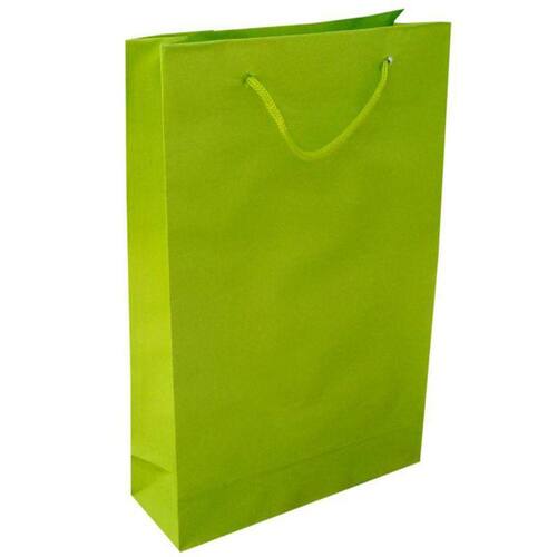 100 Sacolas De Papel Verde Limão. Sacolas de papel para lembrancinha de festa, sacolinha surpresa, transporte de chocolates, perfumes, roupas, papelaria, brinquedos e presentes em geral. 100 unidades. Sacolinhas produzidas em papel 90 gramas. Já vem montada, pronta para uso, com alças de nylon e fundo reforçado em papel cartão 190 gramas, ficam super resistentes. Medidas 25cm altura x 17cm largura x 6cm profundidade lateral . Não personalizamos.