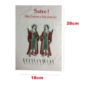 Contém: 1000 unidades de sacos de plástico para São Cosme e Damião Tamanho aproximado: 18cm x 28cm Material: Plástico Desenho: estaremos enviando o modelo disponível em Marca: Não Informado Ean: 7803760686131