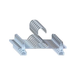 Confeccionado em poliestireno (PS), um polímero termoplástico reconhecido por sua leveza e resistência. Este material oferece durabilidade, permitindo que os cabides suportem o peso das saias infantis sem deformações. A leveza do poliestireno facilita o manuseio e transporte, otimizando a organização do estoque em ambientes de varejo.