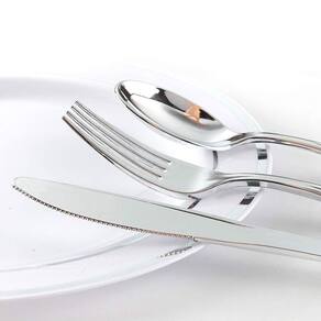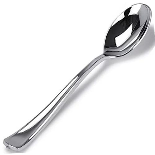 Kit 104 Colheres 17,3Cm Descartáveis De Luxo Plástico Prata