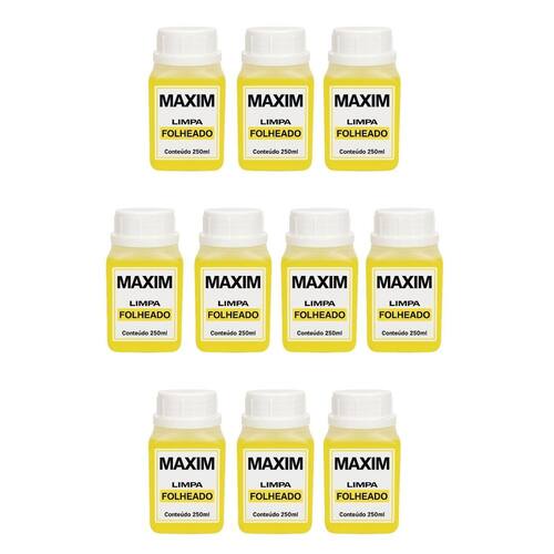 Kit 10Un Limpa Chapeados Folheado Semijóia Maxim 250Ml Grande Liquido Descrição do produto: O limpa chapeados maxim é um produto específico para limpar semijóias e fácil de usar. Atenção para o modo de usar Modo de usar: - passe o limpa chapeados maxim na semijóias banhada folheada ou cobre utilizando algodão. - enxágue em água corrente e enxugue bem com uma flanela mágica. Descarte o algodão. - para objetos maiores, utilize um recipiente de vidro ou plástico com imersão da peça por 10 segundos apenas. - lave bem o recipiente utilizado. - descarte o produto em água corrente. - não risca e nem desgasta a prataria. - limpa chapeados maxim retira a oxidação e a gordura, deixando ainda, uma camada de proteção no objeto. Marca: Não Informado
