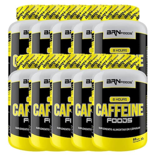 KIT 10x 8 Hours Caffeine Foods 60 Cáps - BRN Foods Desenvolvido para aumentar o nível de energia e melhorar sua performance durante os treinos. O 8 HOURS CAFFEINE é um suplemento de cafeína microencapsulada para atletas que garante a liberação imediata e gradativa da cafeína anidra. Substância capaz de aumentar a resistência aeróbica, acelerando substancialmente o metabolismo, ajudando na queima calórica e gerando maior disposição em exercícios físicos de longa duração.