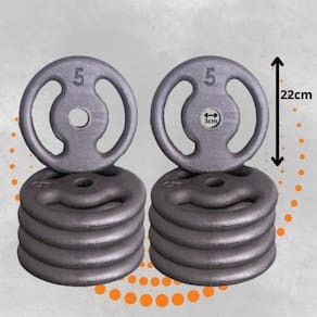 Kit 10x Anilhas de Ferro 05Kg Kit 10x Anilhas de Ferro 05Kg - Anilhas&Cia O Kit Anilhas de Ferro 05Kg é feita em ferro fundido de alta resistência, com pintura eletrostática que protege contra oxidação e desgaste. Possui furação padrão de 30mm, compatível com barras de musculação, e design compacto para fácil manuseio. Ideal para treinos de força, musculação e condicionamento físico, podendo ser Utilizado em exercícios como supino, agachamento, rosca direta e tríceps testa. Ficha técnica resumida: Peso: 50kg Material: ferro fundido Acabamento: pintura eletrostática preta Furação: 30mm Dimensões: 3 x 22 22 cm Conteudo da Embalagem: 10 unidades de Anilha Ferro 05kg : 3 meses