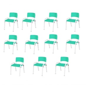 Kit 11 Cadeira Iso Infantil Creche, Escola Base Branco Verde água