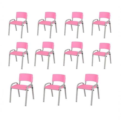 Kit 11 Cadeiras Infantil Iso, Escola, Base Cinza- Rosa