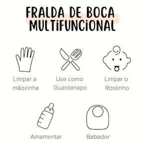 Paninhos de boca: 30x30 cm Fraldas de pano: 60x60 cm Cuidados com o Produto