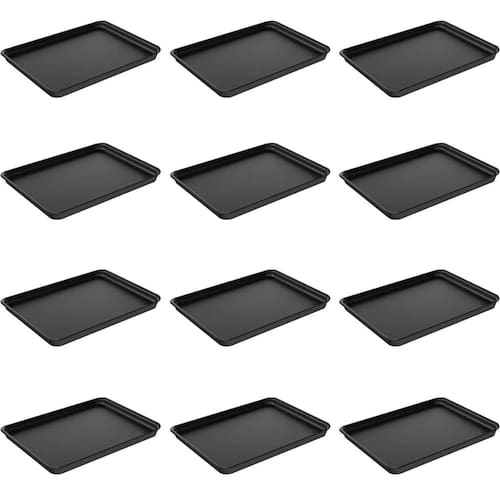 Kit 12 Bandejas Plásticas Servir Coza 32x23cm Preto Restaurante A4 Fast Food Lanchonete Bar.