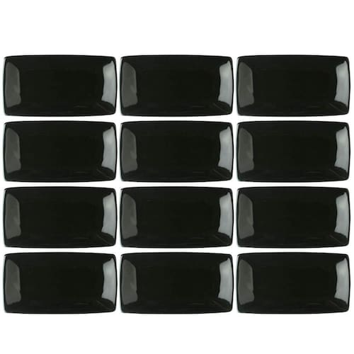 Garantia: 90 dias / Peso de cada: 0,631kg / Cor predominante: preto / Referência: 7798140275527; Dimensões de cada: 22cm (C) x 12cm (L) x 2cm (A); Quantidade: 12 bandejas; Material: porcelana.