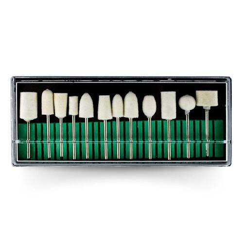 Características Principais: - 12 Brocas de feltro; - 12 Formatos diferentes; - Perfeitas para polir e dar brilho; - Utilizada em técnicas como unha de gel, unha acrílica e alongamentos em geral; - Diversos formatos para todos os detalhes e formatos de unhas; - Toque suave.