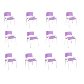 Kit 12 Cadeira Iso Infantil Creche, Escola Base Branco Lilas