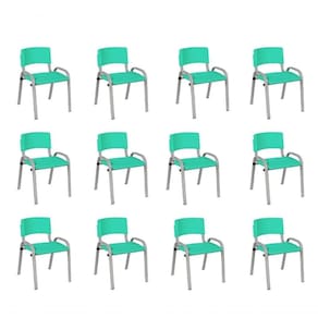 Kit 12 Cadeira Iso Infantil Creche, Base Cinza Verde água