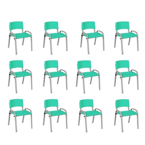 Kit 12 Cadeira Iso Infantil Creche, Escola Base Cinza Verde água