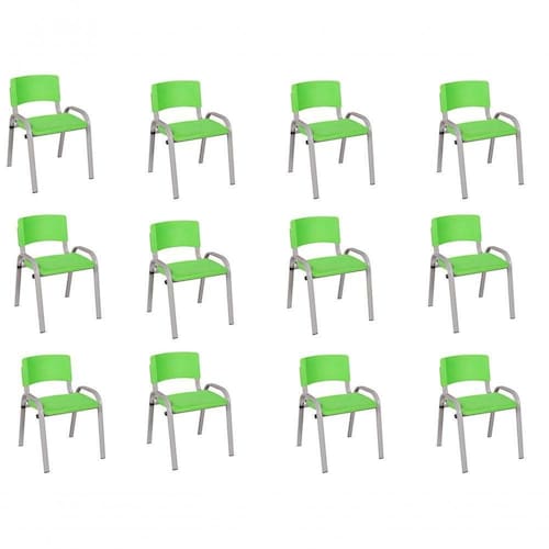 Kit 12 Cadeira Iso Infantil Creche, Escola Base Cinza Verde Claro