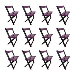 AS IMAGENS SÃO MERAMENTE ILUSTRATIVAS E PODEM SOFRER VARIAÇÕES DE COR E PEQUENOS DETALHES DE ACORDO COM O SEU MONITOR, ILUMINAÇÃO DO AMBIENTE E ATÉ MESMO A SUA PERCEPÇÃO VISUAL.Kit 12 Cadeiras de Madeira DobrÃvel Roxo