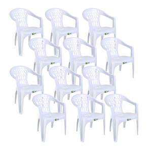 Kit 12 Cadeiras de Plastico com Braco Duo Bella Duoplastic Empilhaveis - Branco