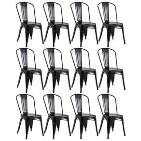 Kit 12 Cadeiras Iron Tolix - Preto Cadeira modelo Tolix: Material: Aço carbono (Pintura epoxi eletrostática) - Altura do encosto: 84 cm - Altura do assento: 44 cm - Largura do assento: 36 cm - Profundidade do assento: 36 cm - Distância entre os pés: 42 cm - Peso suportado: 130 kg.