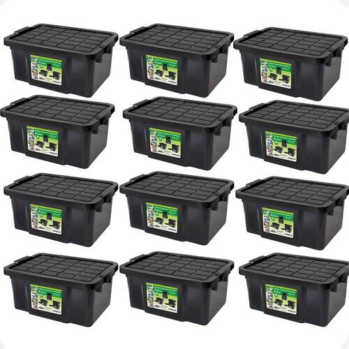 Kit 12 caixas organizadora multiuso preta 25l empilhável