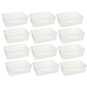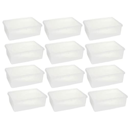 Garantia: 90 dias / Peso total: 2,88kg / Cor predominante: transparente / Referência: 7798139234726; Dimensões de cada caixa: 27,2cm (C) x 17cm (L) X 9,5cm (A); Conteúdo: 12 caixas organizadoras com tampa; Capacidade: 3,5L cada; Material: polipropileno.