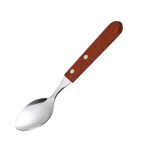 Materiais: Aço inoxidável + Madeira Dimensões: 19 cm de altura x 4 cm de diâmetro Peso: 444 g conjunto de 12 unidades Cor: Inox Composição: 01 Kit 12 Colheres de Mesa com Cabo de Madeira