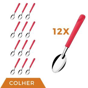Kit 12 Colheres Linha Luna Vermelho Aço Inox Sorvete Buffet