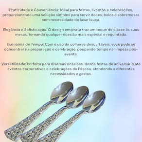 Contém: 12 unidades de Colher Prata Plástico Descartável 13,8cm