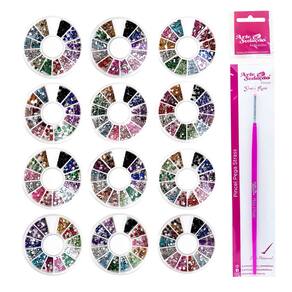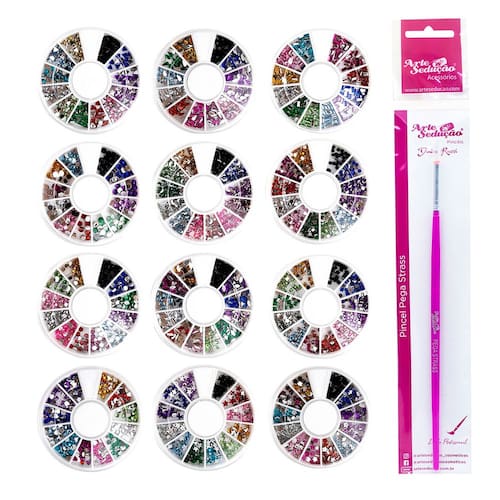 Contém: 12 - Discos de Strass de Formas e Modelos Diferentes 01 - Pincel Pega Strass Arte Sedução