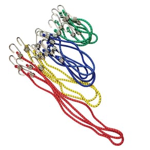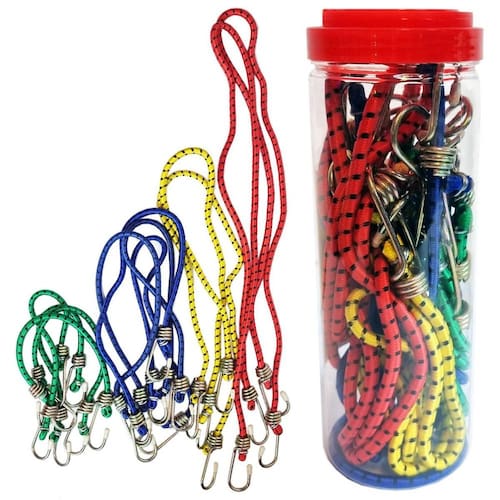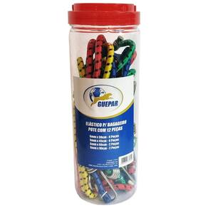 - Marca: Guepar - Referência: 861-1369 - Indicado para diversas formas de uso como amarrar carga, bagagens, entre outros - 4 Elásticos 30cm x 6mm - 4 Elásticos 45cm x 6mm - 2 Elásticos 60cm x 6mm - 2 Elásticos 90cm x 6mm - Indispensável para amarração e segurança no transporte de cargas com bicicletas, carrinhos de mão, moto, pick ups, caminhonetes, bagageiro de carros, como camping, pesca, motociclismo, paraquedismo, asa-delta, etc... - Fabricada em borracha trançada de alta resistência revestido com fibra - Ganchos de aço carbono com acabamento em zinco - Pontas dos ganchos revestidos com borracha para não danificar os veículos - O Cabo de Elástico Extensor é fácil de usar e ajustar, pois tem ganchos em cada ponta que ajudam a prender os objetos de forma segura e prática. - Garantia: 90 dias