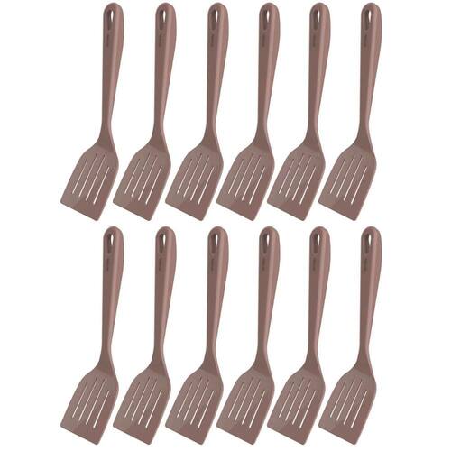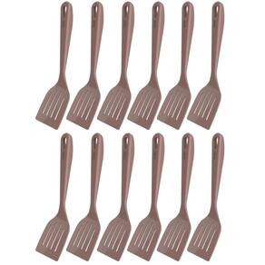 Garantia: 90 dias / Peso total: 720g / Cor predominante: amêndoa / Referência: 7794462483350; Dimensões de cada espátula: 31,5cm (C) x 8cm (L) x 4cm (A); Conteúdo: 12 espátulas culinárias; Material: nylon.