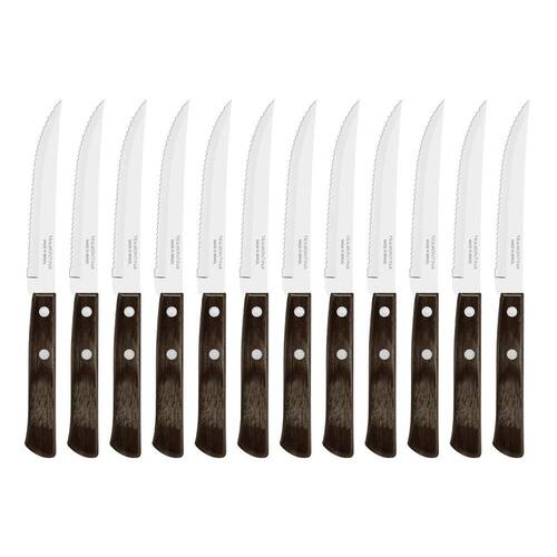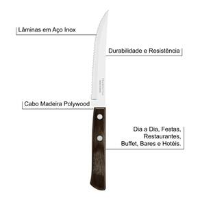 Você que precisa de talheres de qualidade na hora seus convidados e principalmente para o dia a dia! Agora você tem a Faca de Churrasco Tramontina Polywood Inox Cabo Castanho de 5 polegadas, seu churrasco no jantar ou almoço terá o charme e a qualidade que você merece.Com lâmina produzida em aço inox com tratamento térmico, a faca possui fio de alta durabilidade e resistência.Possui cabo em madeira tratada Polywood que proporciona a combinação perfeita de material e cor, ideal para ambientes residenciais e comerciais.Além de tudo isso, pode ir à máquina de lavar louças facilitando seu dia a dia ainda mais.Este modelo é ideal para festas, restaurantes, buffet, bar e hotéis. Legal né? Compartilhe com seus Amigos!Conteúdo do Kit:12 - Facas de Churrasco Tramontina Polywood Inox Cabo Castanho.Características do produto:Lâmina: Em Aço Inox;Cabo: Madeira Polywood Castanho.Dimensões Produto (Compr. X Larg. X Alt.):Comprimento: 21,2 cmLargura: 1,0 cmAltura: 1,9 cmTAGS e palavras chave do produto:Restaurantes, Talheres, Faqueiro, Atacado, Buffet, Bar, Hotel, Faca de Serra, Faca de Serrinha, Faca de Churrasco, Faca Para Churrasco, Faca de Mesa, Faca Para Carne 5 Polegadas, Talher, Talheres Uso Diário, Jogo de Talheres, Faqueiro, Jogo de Faqueiros, Jogo de Facas, Conjunto de Facas, Cabo Castanho, Tramontina, Polywood, Castanho, Cabo de Madeira.*imagens ilustrativas.Os objetos que ambientam as imagens, não acompanham o produto. Fique atento: As cores das imagens podem sofrer alterações devido a luminosidade, configurações do monitor e até mesmo a percepção do usuário.