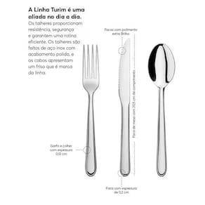 Talheres ideais para o seu dia a dia. Jogo de 12 Facas de mesa em aço inoxidável Turim Brinox. Fácil de limpar, guardar e ir a mesa com brilho e durabilidade. A Faca de mesa da linha Turim proporciona o brilho, a resistência e a segurança do aço inoxidável, garantindo uma rotina eficiente.A linha Turim é uma aliada para o dia a dia, proporcionando resistência, segurança e garantem uma rotina eficiente. Os talheres são feitos de aço inox com acabamento polido, e os cabos apresentam friso que é a marca da linha!