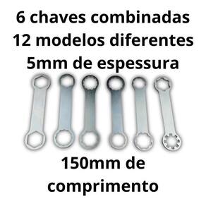 Kit com 6 chaves combinandas totalizando 12 modelos para suspensão de bike O mais completo do mercado Compatível com praticamente todos os modelos de suspensão: Suntour, tsw, rosso, viking, rst, spinner, rock shox, rst modelo 2, proshock, fox, manitou, Comprimento ideal para o manuseio de 150mm Espessura de 5mm, proporcionando uma ferramenta de maior resistência. Produto em aço com alta dureza e resistência, tratamento superficial eletrolítico que não permite que a ferramenta sofra oxidação. Produto cortado a laser garantindo o melhor ajuste e desempenho Excelente qualidade e durabilidade - qual o valor do - qual o prazo de entrega - tem Garantimos o produto num período de 12 meses contra defeitos de fabricação. Vale lembrar que a não cobre mau uso do produto.