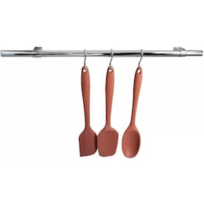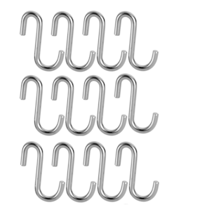 Conjunto com 12 ganchos de aço inox para barra de utensílios de parede em formato de "S" da Schmitt Aramados