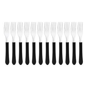 Conteúdo do Kit: 12 - Garfos de Mesa Tramontina Leme Inox Cabo Preto.