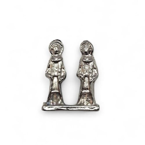 A Imagem Cosme e Damião Mini de Metal (2 cm) é um símbolo delicado e cheio de significado. Representando os santos gêmeos da proteção, da saúde e da pureza, essa miniatura é perfeita para carregar consigo, colocar em carteiras, bolsas, altares ou usar como amuleto pessoal.