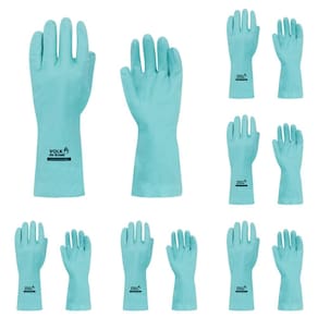 Luva de segurança confeccionada em nitrila, revestimento interno em flocos de algodão, relevo antiderrapante na face palmar e ponta dos dedos.