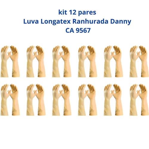 Kit 12 pares Luva Longatex CA 9567 Proteção Eficiente para Mãos e Antebraços A luva Longatex é confeccionada em látex natural e possui punho longo, proporcionando proteção eficaz para mãos e antebraços em diversas atividades. Seu design com palma e dedos antiderrapantes garante segurança no manuseio de objetos, mesmo em ambientes úmidos.