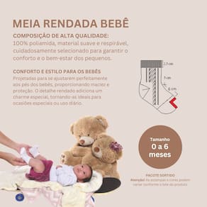 - Presente Encantador: Além de ser ideal para o próprio bebê, o kit de meias rendadas é um presente encantador para recém-nascidos e chás de bebê.