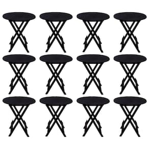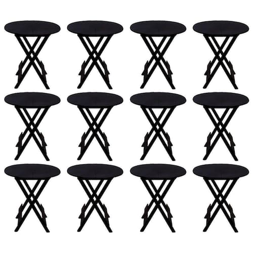 Kit 12 Mesas Redondas Dobráveis Em Madeira Maciça 70x70 Preto Ideal Para Bares E Restaurantes