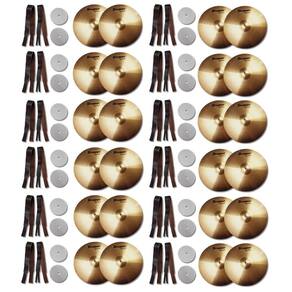 Kit 12 Par Prato 16 Fanfarra Dreamer Cymbals Latão Brilhante + 12 Par de Alça Com Feltro Para Prato Fanfarra Marcial Couro