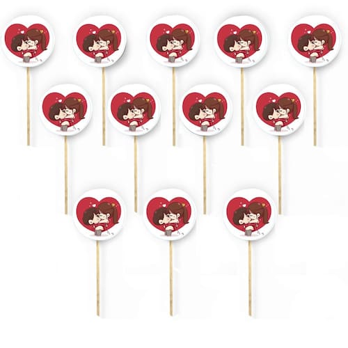 Kit 12 Picks Decorativos Arranjo de Flores Madeira Casal
