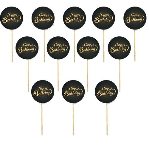 Kit 12 Picks Decorativos Arranjo Flor Madeira Happy Birthday