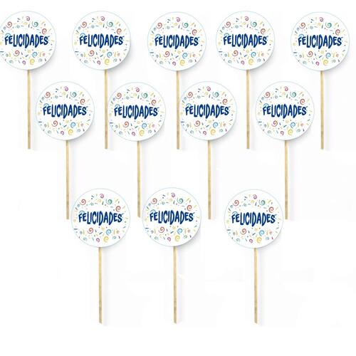 Kit 12 Picks Decorativos Arranjo Flores Madeira Felicidades