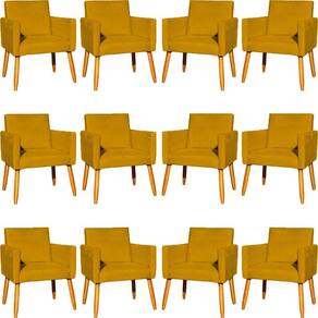Kit 12 Poltronas Decorativa Para Sala Nina Suede Cores Pé Palito 30cm Castanho - Suede