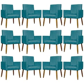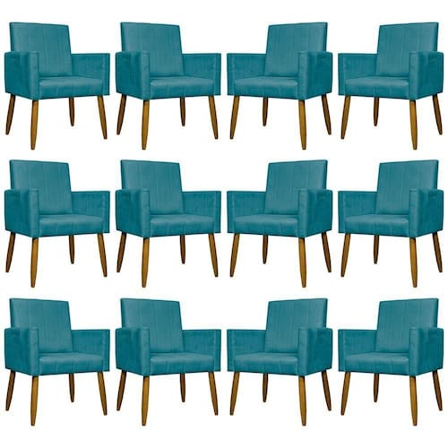 Kit 12 Poltronas Decorativas Mari Pé Palito Castanho - Azul-turquesa Suede