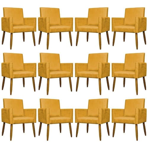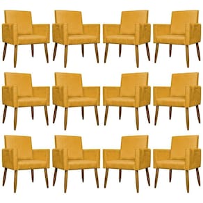 Kit 12 Poltronas Decorativas Mari Pé Palito Castanho - Mostarda Suede - Amarelo