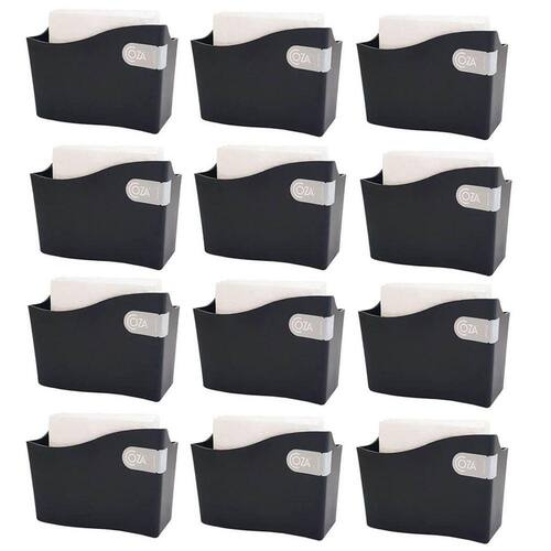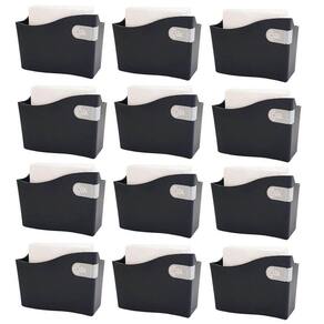Garantia: 90 dias / Peso: 960g / Cor predominante: preto / Referência: 105000008X12 Dimensões de cada porta guardanapo: 14cm (C) x 6cm (L) x 10cm (A); Comporta: guardanapos médios; Material: polipropileno.
