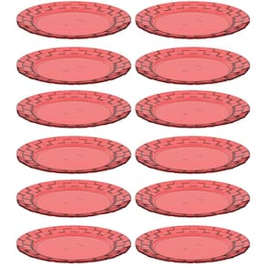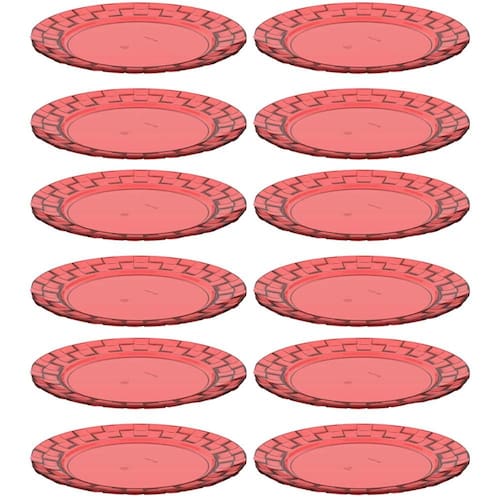 Garantia: 90 dias / Peso de cada: 96g / Cor predominante: vermelho / Referência: 7798140665274; Dimensões de cada: 19,2cm (D) x 1,5cm (A); Conteúdo: 12 pratos médio; Material: poliestireno.