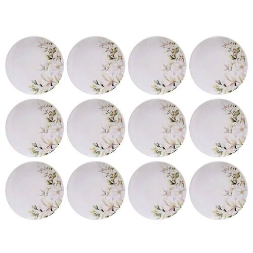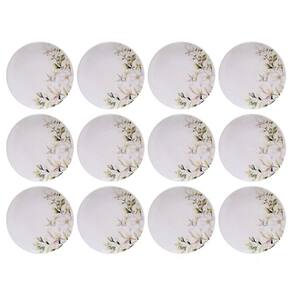 Kit 12 Pratos de Sobremesa Porcelana Branca 21cm Floral Magnólia Tramontina Mesa Posta.