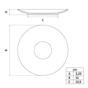 Dimensões de cada prato: 21cm (D) x 2,5cm (A);